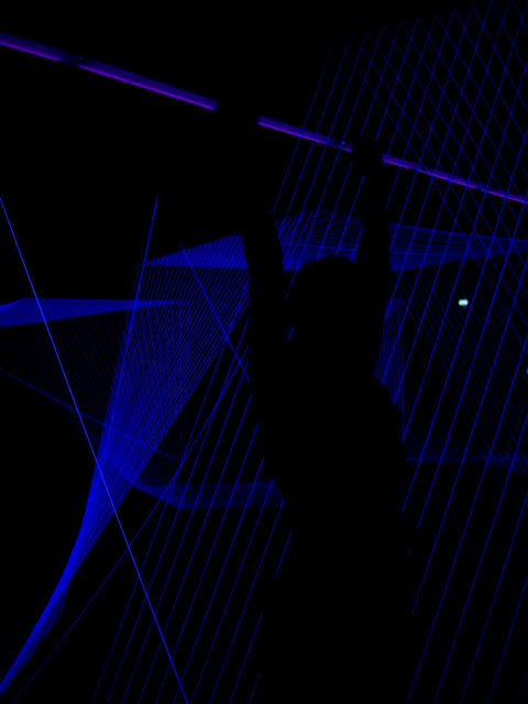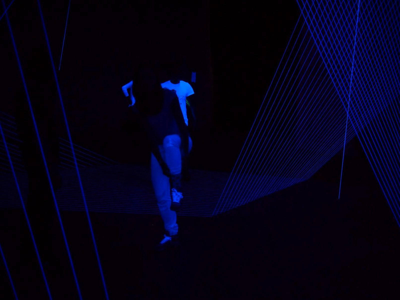 Ok, so they weren’t technically lasers, but actually bits of white string in a dark room with a black light shining on them.