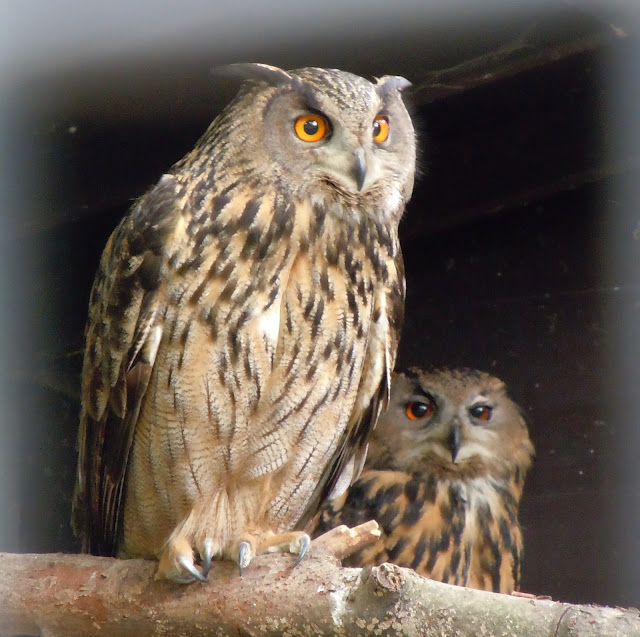 There are actually two owls in this photo. But the fatter one is basically sitting on the smaller one.