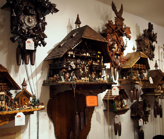When we got to Titisee itself, we discovered that there wasn’t a great deal to see. The lake itself is lovely, but unless you rock up when the sun is shining (we did not), there’s not much to the town itself, except hundreds of carbon copy souvenir shops selling black forest cakes, hats, Kirschwasser, and- of course- the world famous black forest Cuckoo Clocks.