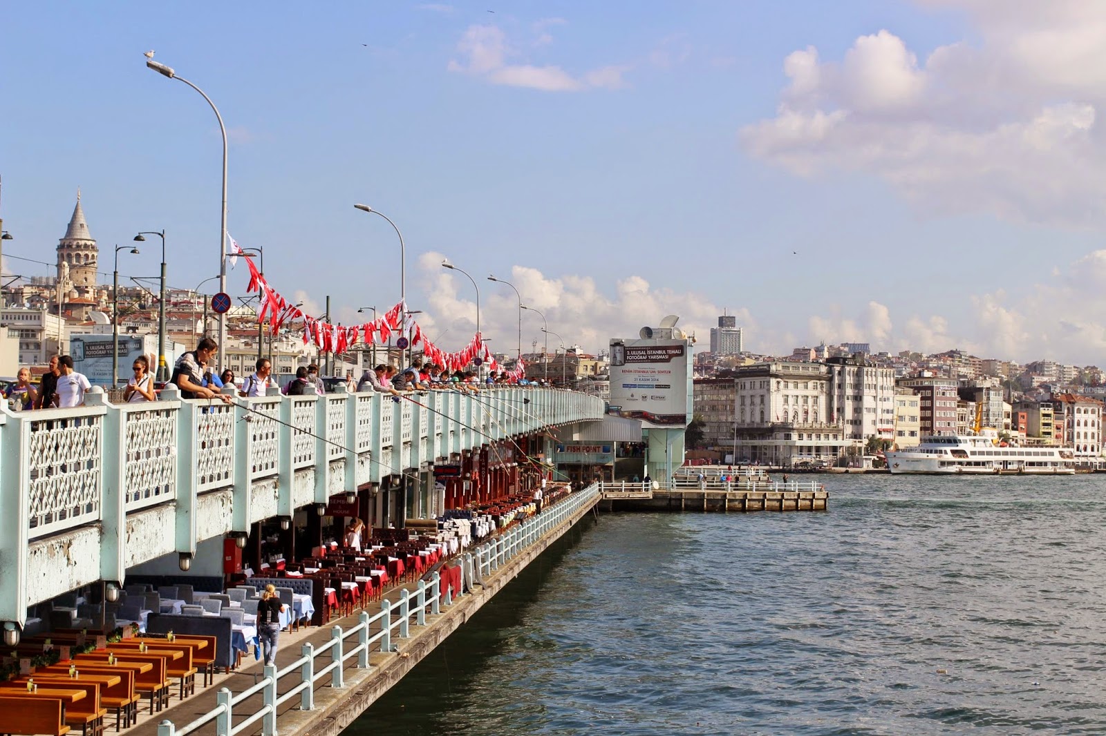 Galata bridge is filled with tourists, fishermen, and a whole bunch of other folk selling things, photographing things (us filthy tourists), or just hanging out.