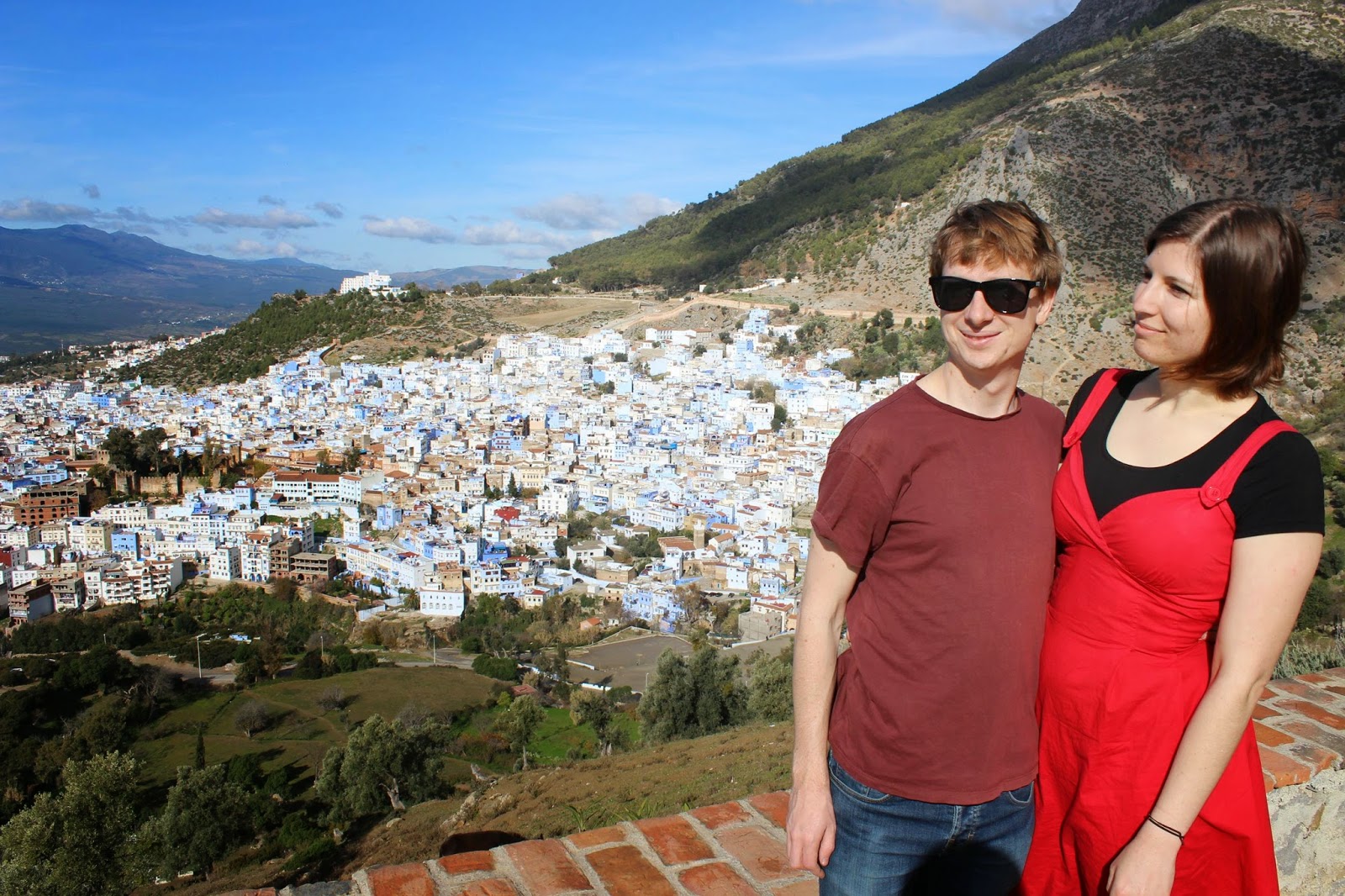 We first went into the city- Guillermo had to buy a ticket to plan his journey out of Chaouen- giving Andy and I an opportunity to pose with the Blue.