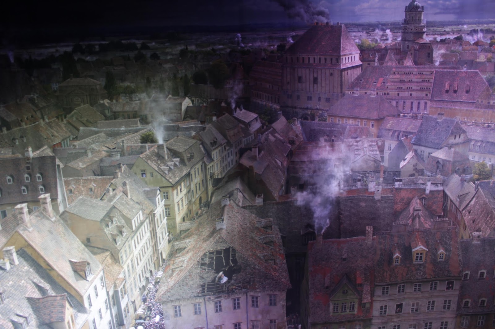 Turning clockwise through the panorma, the aftermath of the Battle of the Nations- a great european war with over 600,000 soldiers, pitting Russia, Prussia, Austria and Sweden against Napolean and his French, Polish and Italian troups, unfolds.