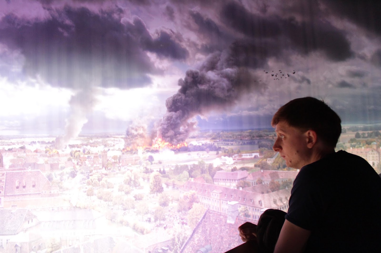 If you take the time afterwards to watch the ‘making of’ (and you really should, it’s just as interesting as the panometer itself), you will see how the extensive team combined photography of actors and animals with city plans and computer graphics to make the thing as near-tactile as possible.